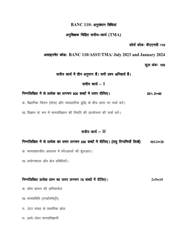 Get IGNOU BANC-110 Solved Assignment 2023-24 Hindi Medium Soft Copy ready for Download in PDF ( July 2023- January 2024 sessions)