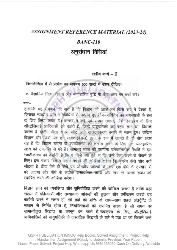 Product IGNOU BANC-110 Solved Assignment 2023-24 Hindi Medium