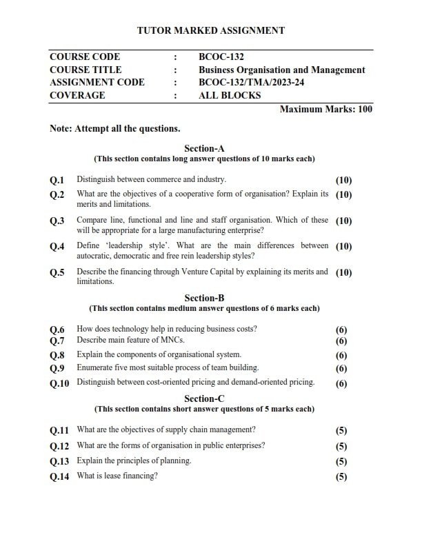| Product | IGNOU BCOC-132 Solved Assignment 2023-24 English Medium |
