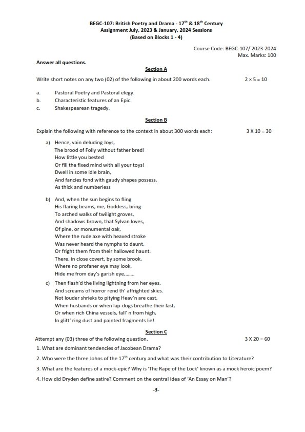 Get IGNOU BEGC-107 Solved Assignment 2023-24 English Medium Soft Copy ready for Download in PDF ( July 2023- January 2024 sessions)