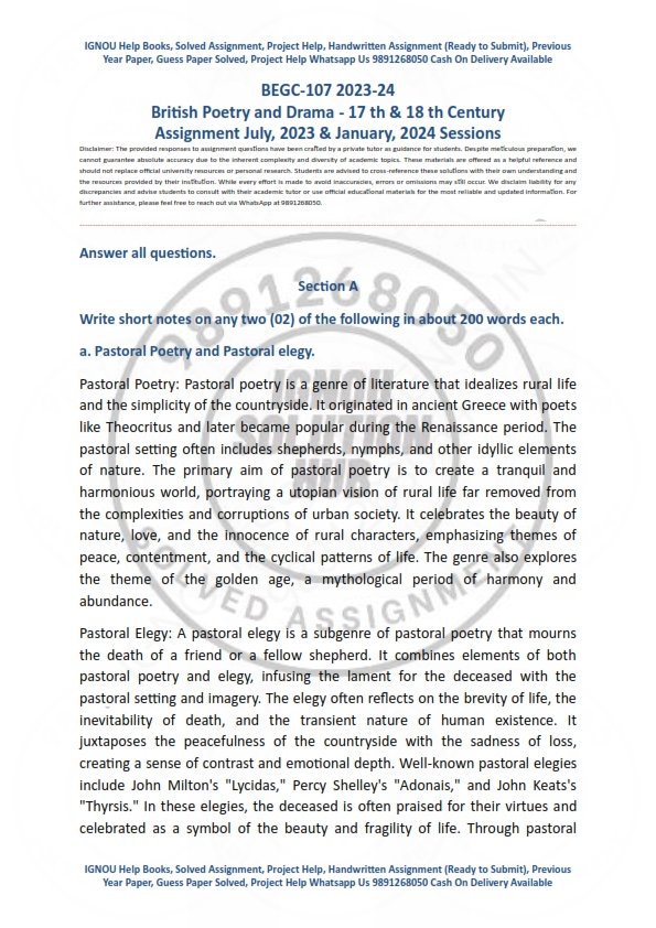 Product IGNOU BEGC-107 Solved Assignment 2023-24 English Medium