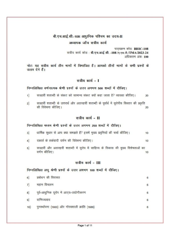 Get IGNOU BHIC-108 Solved Assignment 2023-24 Hindi Medium Soft Copy ready for Download in PDF ( July 2023- January 2024 sessions)