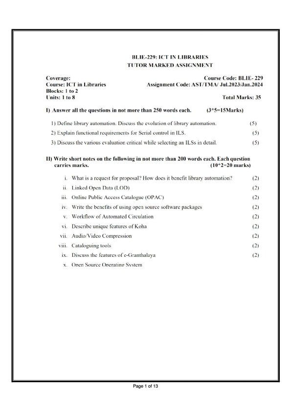 | Product | IGNOU BLIE-229 Solved Assignment 2023-24 English Medium |