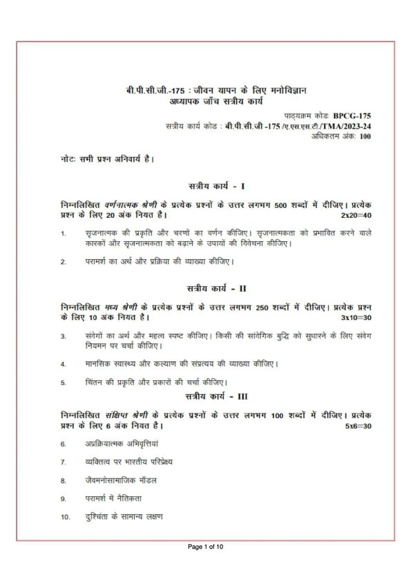 IGNOU BPCG-175 Solved Assignment 2023-24 Hindi Medium