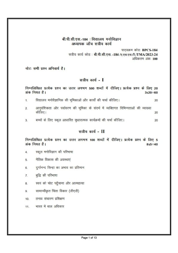 Get IGNOU BPCS-184 Solved Assignment 2023-24 Hindi Medium Soft Copy ready for Download in PDF ( July 2023- January 2024 sessions)