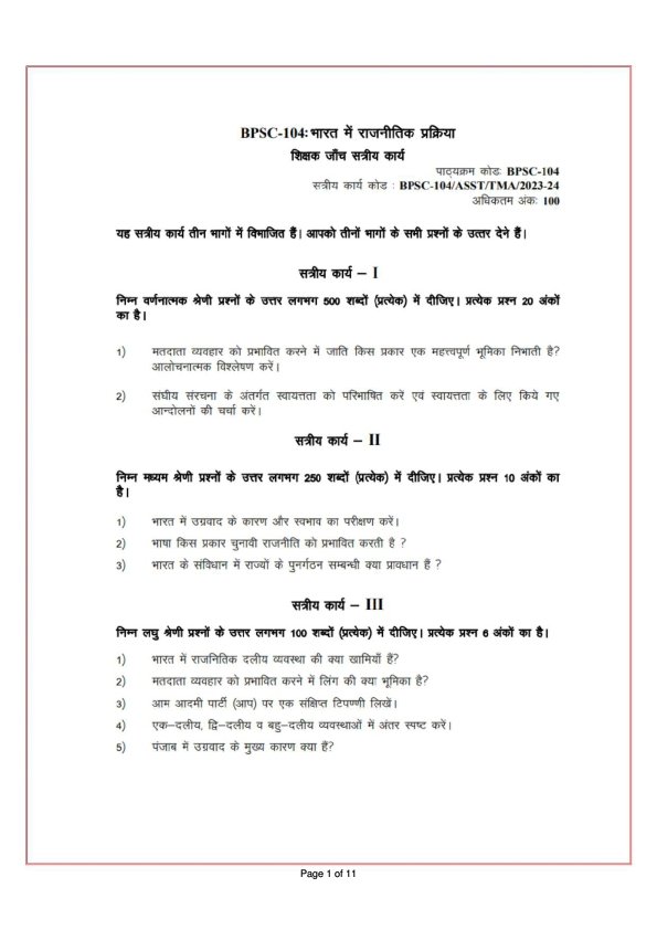 Product IGNOU BPSC-104 Solved Assignment 2023-24 Hindi Medium