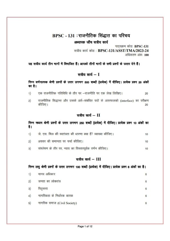 | Product | IGNOU BPSC-131 Solved Assignment 2023-24 Hindi Medium |