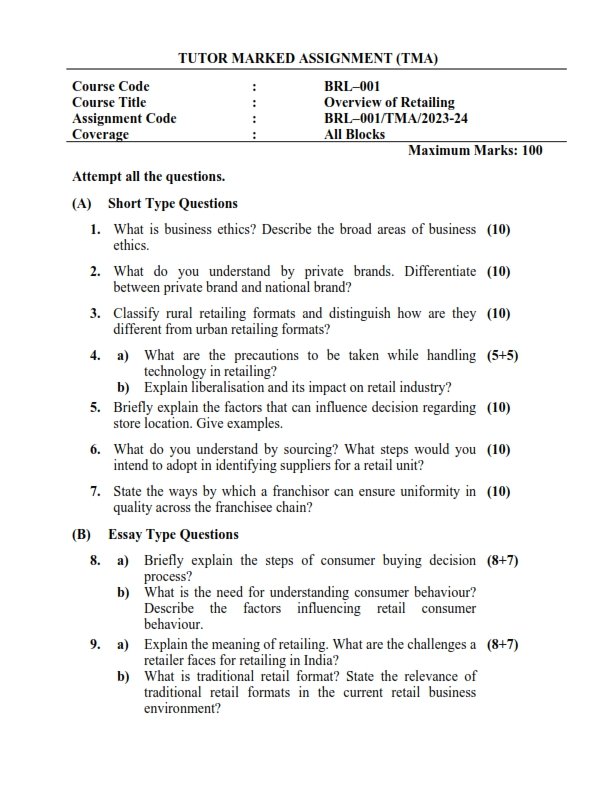 Get IGNOU BRL-001 Solved Assignment 2023-24 English Medium Soft Copy ready for Download in PDF ( July 2023- January 2024 sessions)