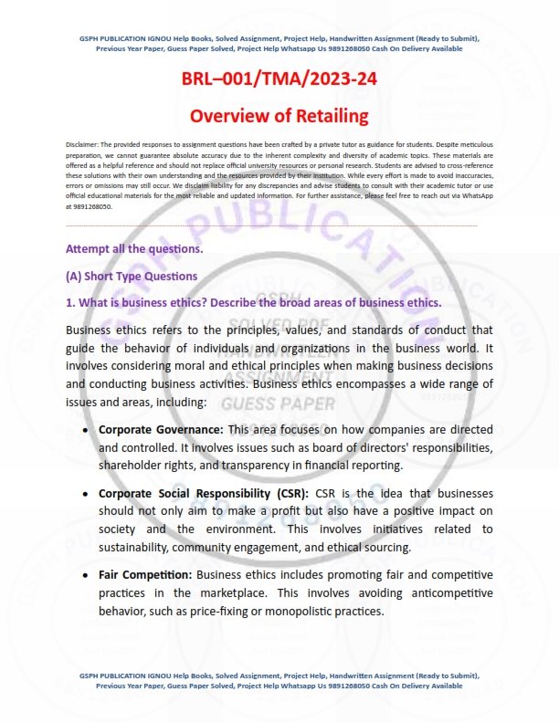 Product IGNOU BRL-001 Solved Assignment 2023-24 English Medium