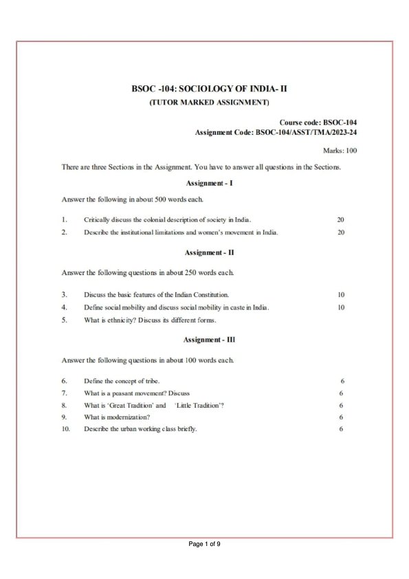Get IGNOU BSOC-104 Solved Assignment 2023-24 English Medium Soft Copy ready for Download in PDF ( July 2023- January 2024 sessions)