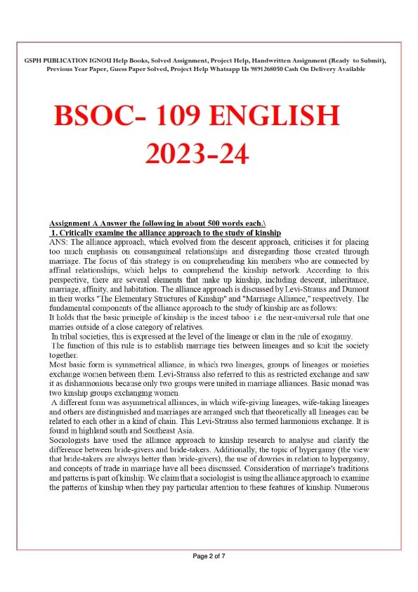 | Product | IGNOU BSOC-109 Solved Assignment 2023-24 English Medium |
