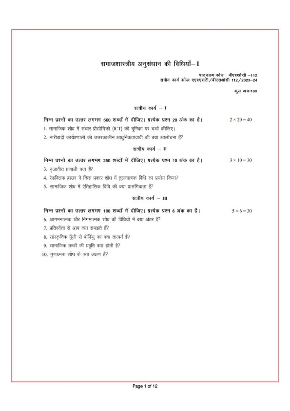 | Product | IGNOU BSOC-112 Solved Assignment 2023-24 Hindi Medium |