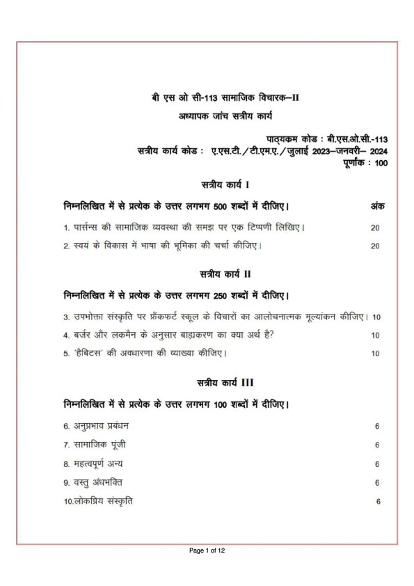 | Product | IGNOU BSOC-113 Solved Assignment 2023-24 Hindi Medium |