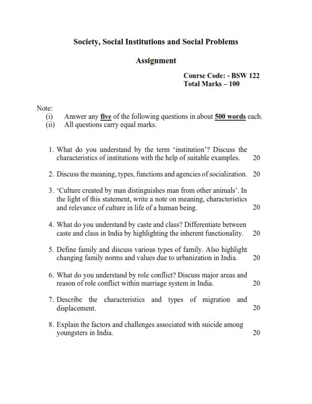 Get IGNOU BSW-122 Solved Assignment 2023-24 English Medium Soft Copy ready for Download in PDF ( July 2023- January 2024 sessions)