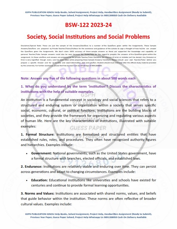 Are you an IGNOU student seeking assistance with your IGNOU BSW-122 Solved Assignment 2023-24 English Medium? Look no further! Our comprehensive digital solutions are crafted in English for easy understanding, providing step-by-step answers to your assignment queries. Our expert team is well-versed in IGNOU’s curriculum, ensuring that our solutions are both helpful and accurate. Think of these solved assignments as your academic allies, guiding you towards success in your coursework.