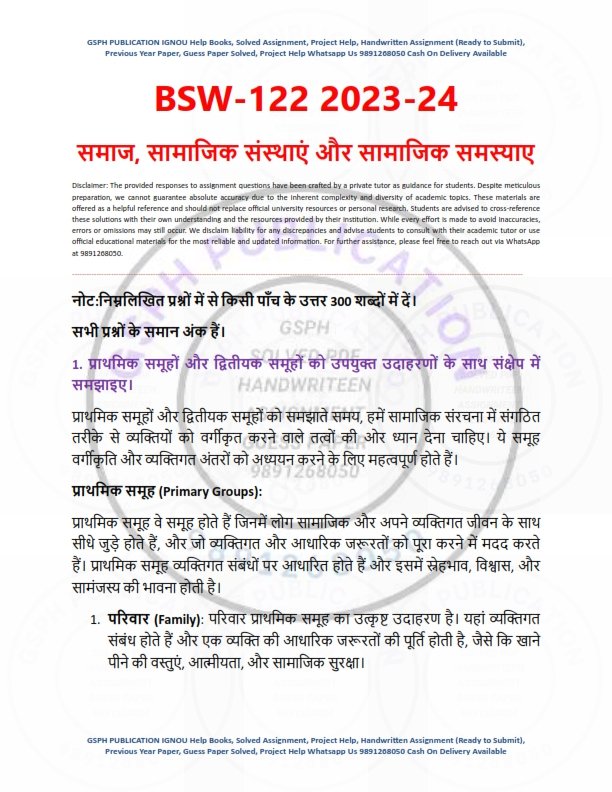 | Product | IGNOU BSW-122 Solved Assignment 2023-24 Hindi Medium |