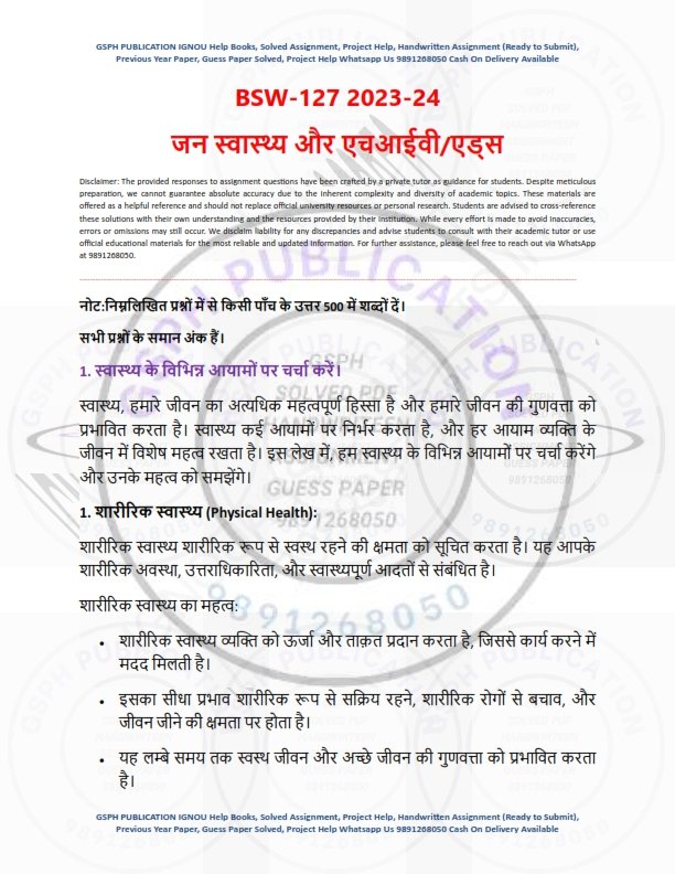 | Product | IGNOU BSW-127 Solved Assignment 2023-24 Hindi Medium |