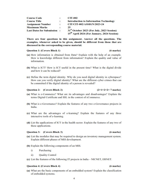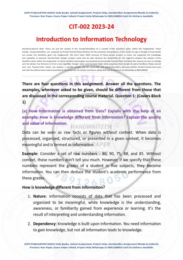 | Product | IGNOU CIT-002 Solved Assignment 2023-24 English Medium |