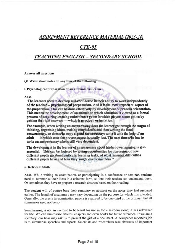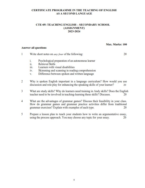 | Product | IGNOU CTE-05 Solved Assignment 2023-24 English Medium |