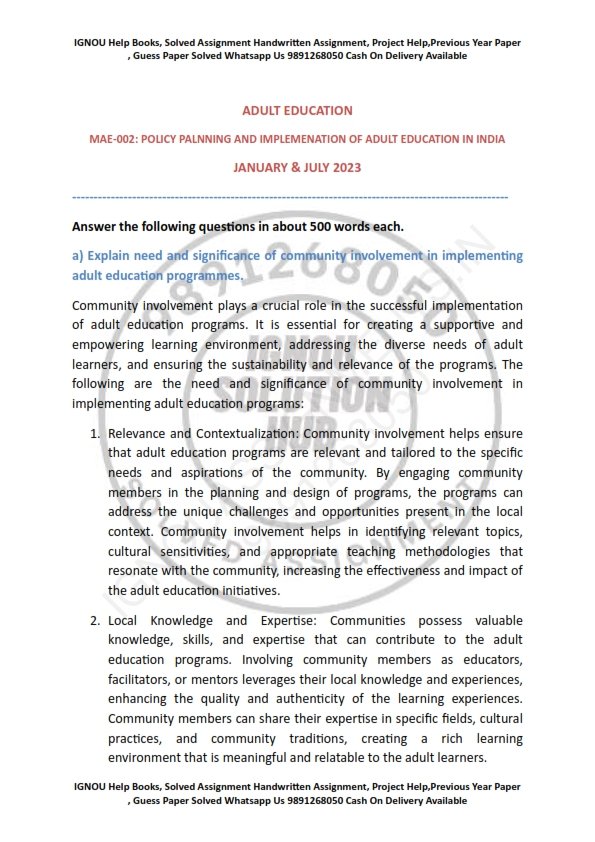 Are you a student of IGNOU looking for high-quality IGNOU MAE-002 Solved Assignment Jan & July 2023 English Medium? Look no further than our IGNOU Solved Assign ment PDF Our digital product provides you with the most comprehensive and reliable IGNOU solved assignments, complete with detailed solutions and step-by-step explanations. Our team of experts has years of experience and in-depth knowledge of IGNOU’s curriculum, ensuring that our solved assignments meet the highest standards of quality and accuracy. With our IGNOU Solved Assignment PDF product, you can rest assured that you’re getting the best possible help with your coursework. Our solved assignments cover a wide range of subjects and courses, and are designed to help you master the material and succeed in your studies.