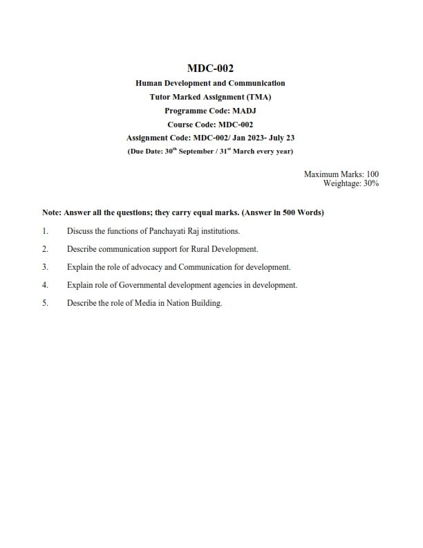 | Product | IGNOU MDC-002 Solved Assignment July 2023 English Medium |