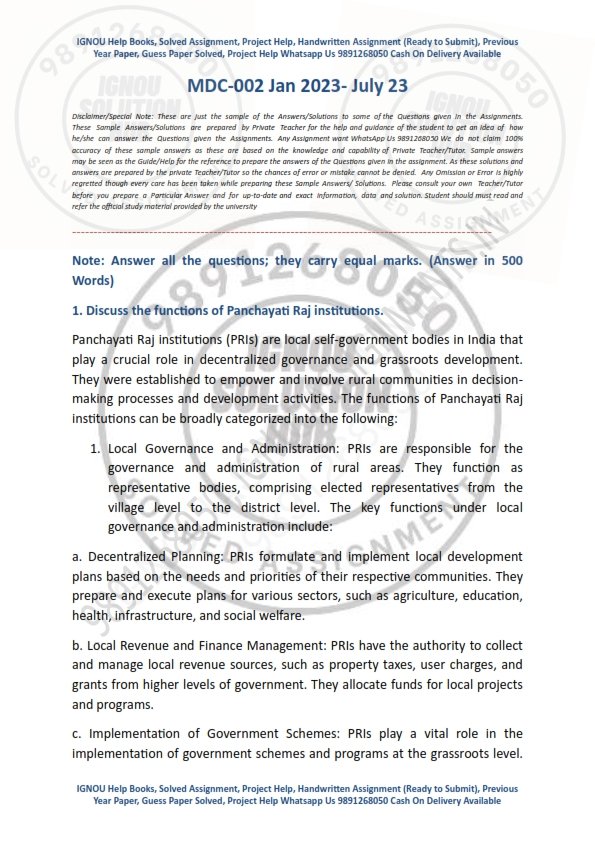 Are you a student of IGNOU looking for high-quality IGNOU MDC-002 Solved Assignment July 2023 English Medium? Look no further than our IGNOU Solved Assign ment PDF Our digital product provides you with the most comprehensive and reliable IGNOU solved assignments, complete with detailed solutions and step-by-step explanations. Our team of experts has years of experience and in-depth knowledge of IGNOU’s curriculum, ensuring that our solved assignments meet the highest standards of quality and accuracy. With our IGNOU Solved Assignment PDF product, you can rest assured that you’re getting the best possible help with your coursework. Our solved assignments cover a wide range of subjects and courses, and are designed to help you master the material and succeed in your studies.