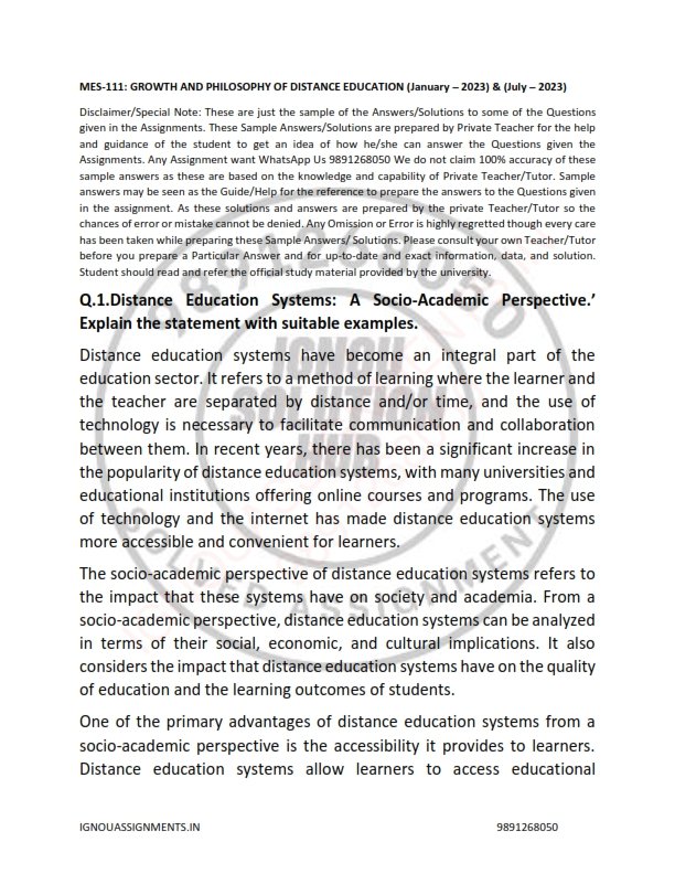Are you a student of IGNOU looking for high-quality IGNOU MES-111 Solved Assignment Jan & July 2023 English Medium? Look no further than our IGNOU Solved Assign ment PDF Our digital product provides you with the most comprehensive and reliable IGNOU solved assignments, complete with detailed solutions and step-by-step explanations. Our team of experts has years of experience and in-depth knowledge of IGNOU’s curriculum, ensuring that our solved assignments meet the highest standards of quality and accuracy. With our IGNOU Solved Assignment PDF product, you can rest assured that you’re getting the best possible help with your coursework. Our solved assignments cover a wide range of subjects and courses, and are designed to help you master the material and succeed in your studies.