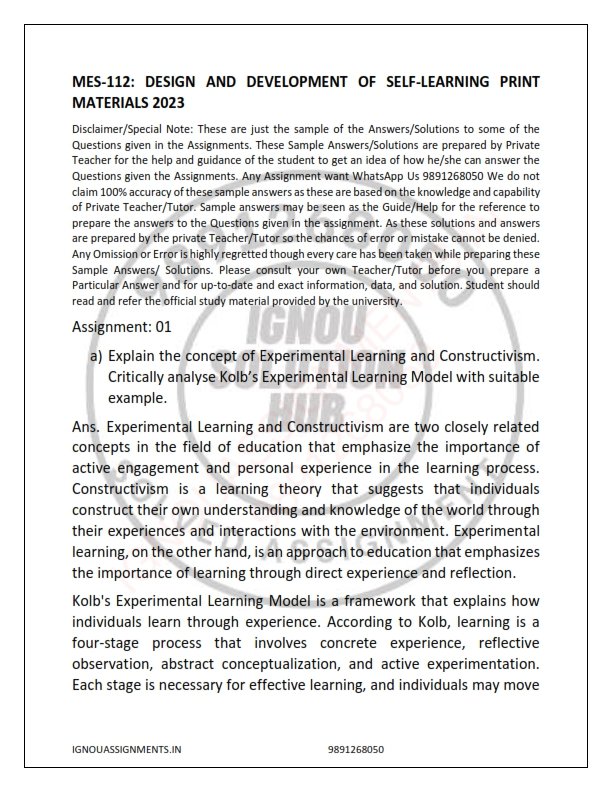 Are you a student of IGNOU looking for high-quality IGNOU MES-112 Solved Assignment Jan & July 2023 English Medium? Look no further than our IGNOU Solved Assign ment PDF Our digital product provides you with the most comprehensive and reliable IGNOU solved assignments, complete with detailed solutions and step-by-step explanations. Our team of experts has years of experience and in-depth knowledge of IGNOU’s curriculum, ensuring that our solved assignments meet the highest standards of quality and accuracy. With our IGNOU Solved Assignment PDF product, you can rest assured that you’re getting the best possible help with your coursework. Our solved assignments cover a wide range of subjects and courses, and are designed to help you master the material and succeed in your studies.
