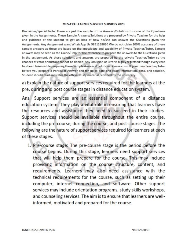 Are you a student of IGNOU looking for high-quality IGNOU MES-113 Solved Assignment Jan & July 2023 English Medium? Look no further than our IGNOU Solved Assign ment PDF Our digital product provides you with the most comprehensive and reliable IGNOU solved assignments, complete with detailed solutions and step-by-step explanations. Our team of experts has years of experience and in-depth knowledge of IGNOU’s curriculum, ensuring that our solved assignments meet the highest standards of quality and accuracy. With our IGNOU Solved Assignment PDF product, you can rest assured that you’re getting the best possible help with your coursework. Our solved assignments cover a wide range of subjects and courses, and are designed to help you master the material and succeed in your studies.