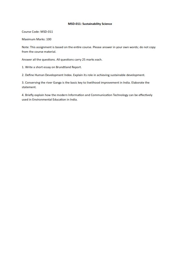 IGNOU MSD-011 Solved Assignment 2023 English Medium