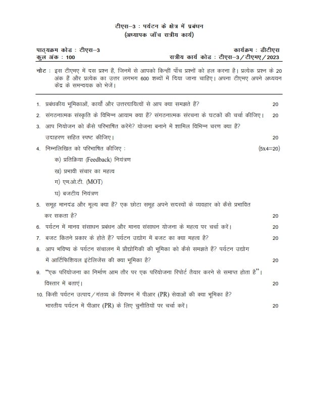 IGNOU TS-3 Solved Assignment 2023 Hindi Medium